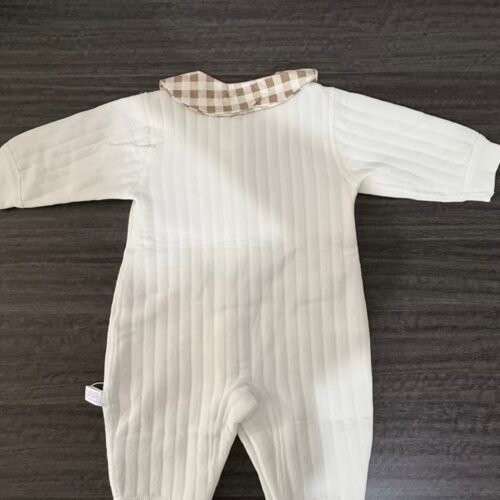 A trendy Korean-style autumn romper made with soft, breathable mesh. Long sleeves and a chic stand collar keep your baby girl cozy and stylish. Perfect for daily wear, outings, and special occasions like full-month celebrations and birthdays.